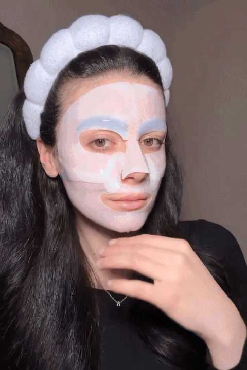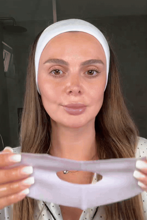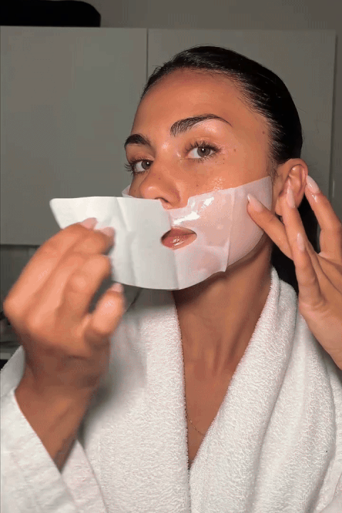 Lorsque le masque est devenu transparent, retirez-le délicatement. Tapotez légèrement pour faire pénétrer le sérum restant. Votre peau est transformée.